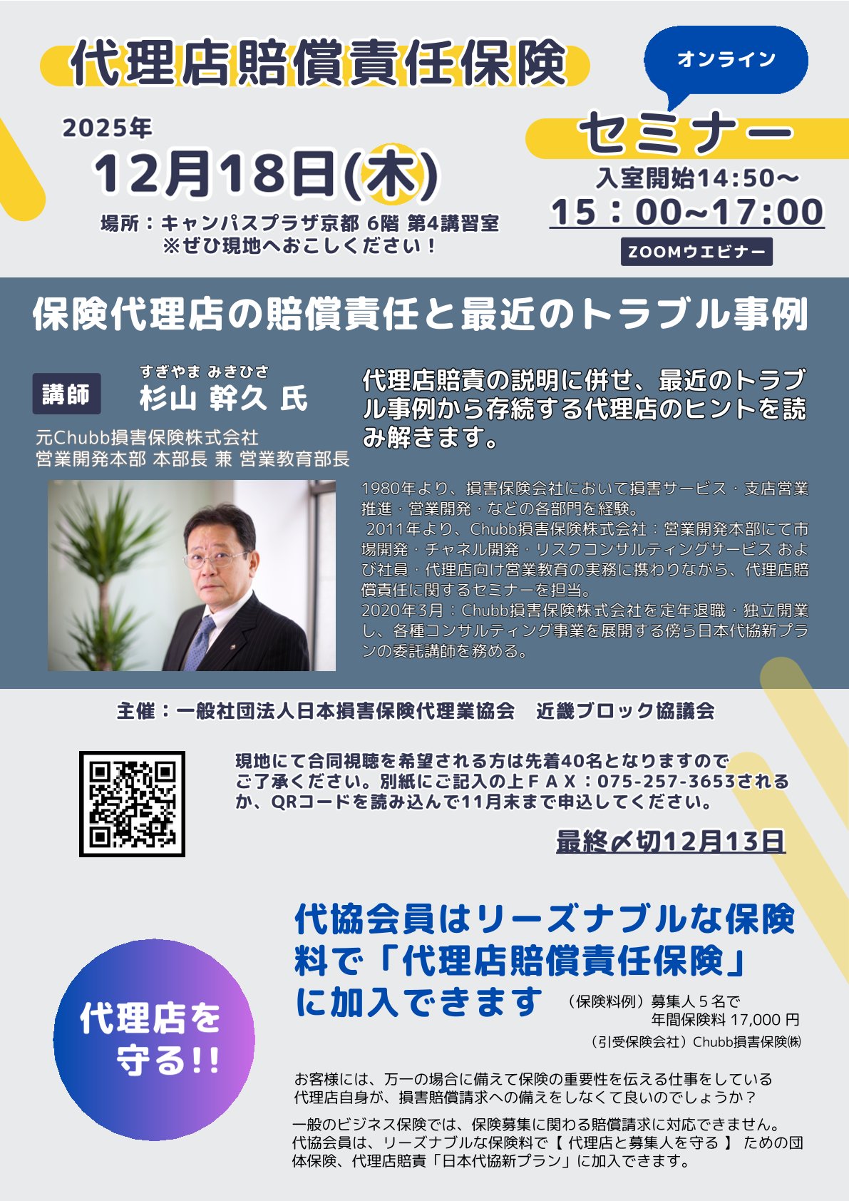 ・2025年度「代理店賠責・日本代協新プラン(保険期間:2025年10月1日~1年間)」