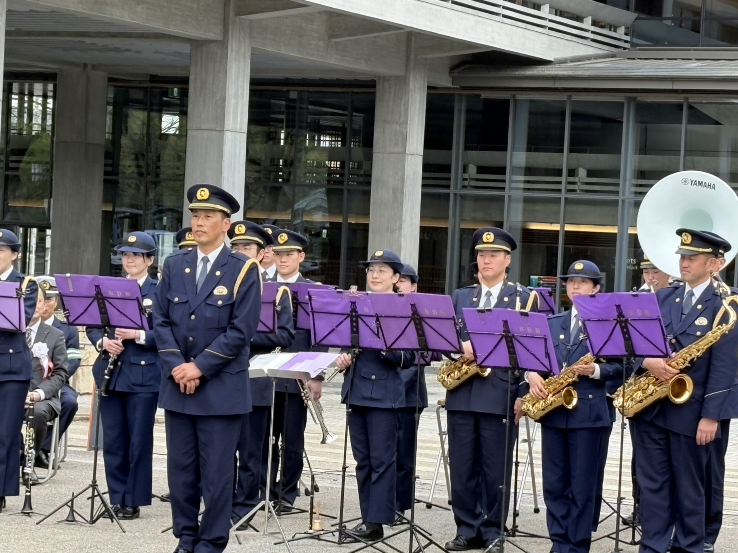 当日は、ブラスバンドの演奏や、ガラード隊の演技などで交通安全を盛り上げておられました。