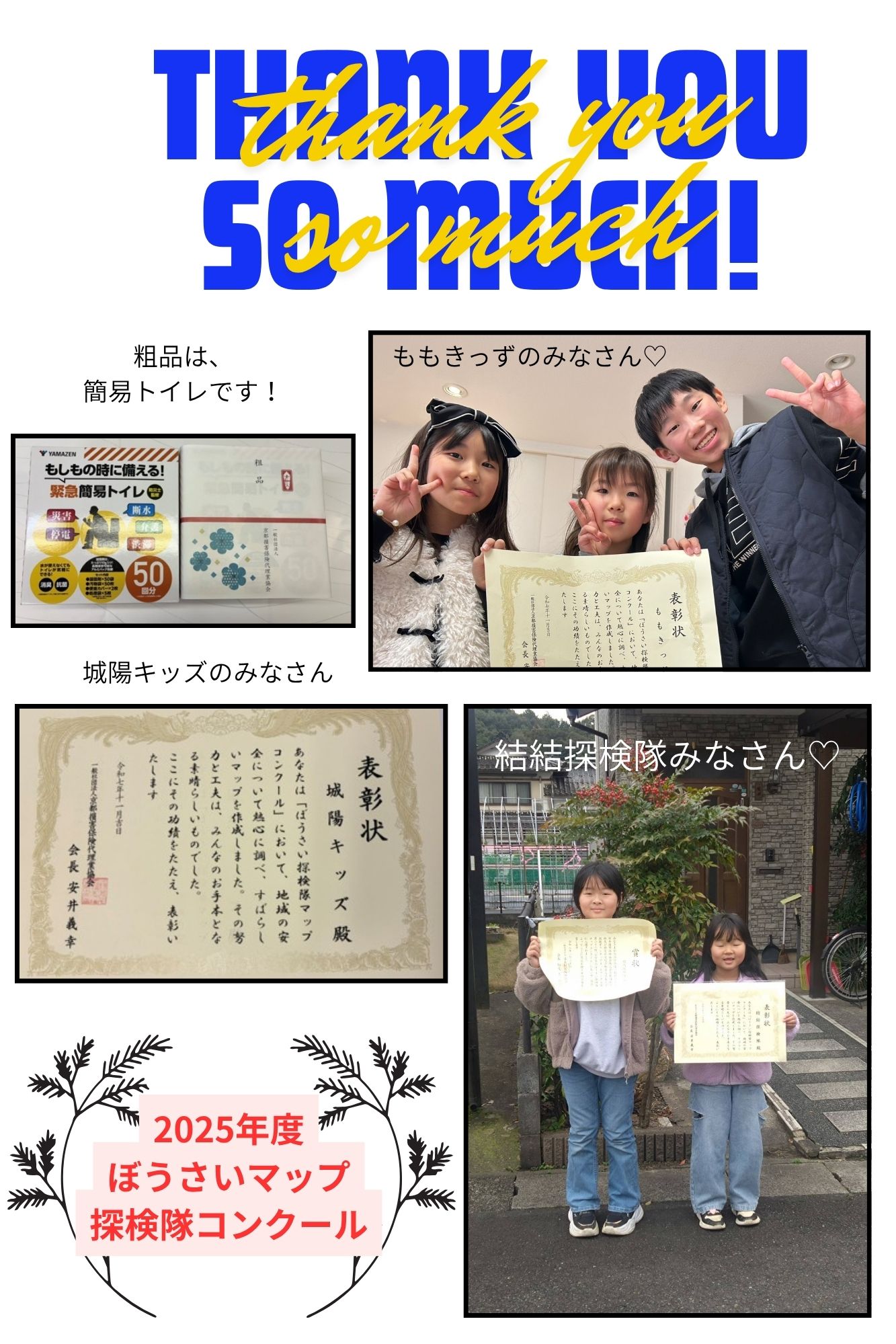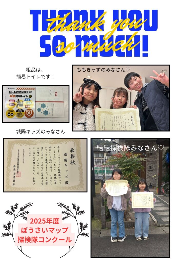 2025年度は京都代協経由でぼうさい探検隊マップコンクールに3グループが応募され、なんと、「結結探検隊」さんが、賞をとられました!