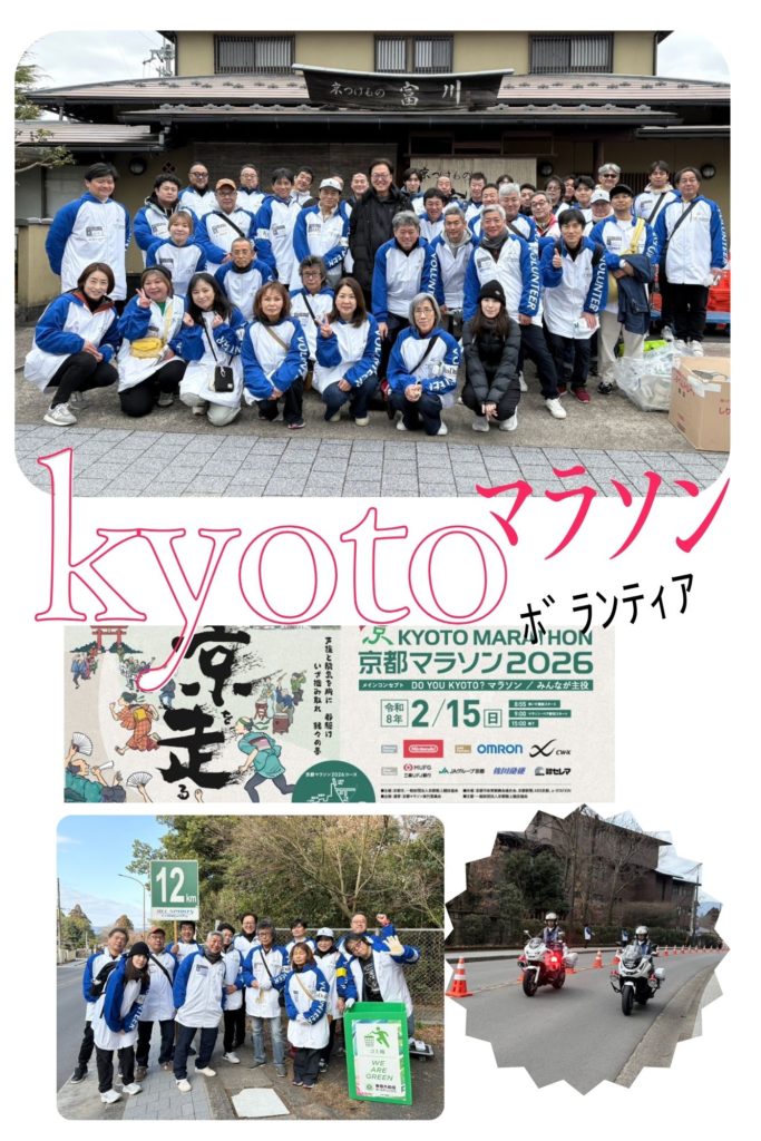 今回も50名を超える人数の京都代協関係者のみなさまがボランティアに参加され、ひとりひとりのランナーが安全に気持ちよく走っていただけるよう、通行などの整備をさせていただく整理員として活動いたしました。私どものボランティア活動場所は、多くのランナーが苦戦する三時間制限関門の手前の坂道でございましたが、声援に手を振ってくださるランナーおひとりおひとりの笑顔を見て非常にすがすがしく感じさせていただきました。